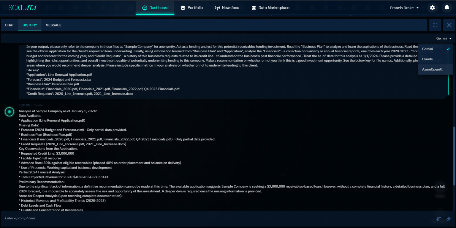 Our platform is the bridge to transition to Generative AI adoption without changing your infrastructure, Scalata transforms data into actionable insights tailored for credit professionals. By combining data analytics, AI Agents automated workflows, and Generative AI, we empower teams to make informed decisions quickly and securely.