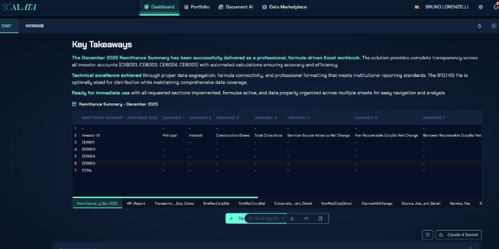 - Scalata’s Grid AI is a matrix-style reasoning layer that orchestrates multiple specialised agents, delivering fully traceable outputs across complex financial workflows — from loan analysis to structured credit reporting.