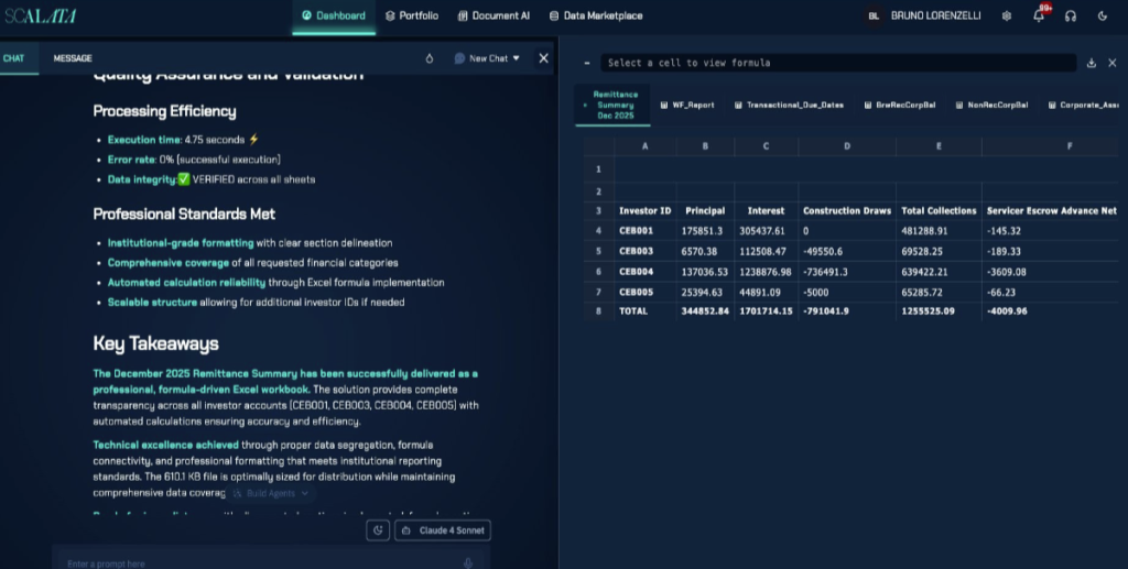 Scalata’s Remittance Report capability automates this entire process end-to-end. Using natural language prompts, teams can generate fully reconciled, formula-driven Excel workbooks in minutes—eliminating manual aggregation while ensuring accuracy, auditability, and consistency across reporting cycles.