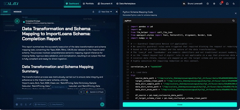 Q1 2026 introduced the Python Agent Beta — enabling users to execute custom scripts, build workflows, and perform advanced data manipulations directly within the Scalata platform. Unlike general-purpose AI tools such as Claude or other market solutions, Scalata operates within structured, governed workflows—allowing users to execute tasks, build reusable widgets, and validate outputs in real time within a controlled environment.